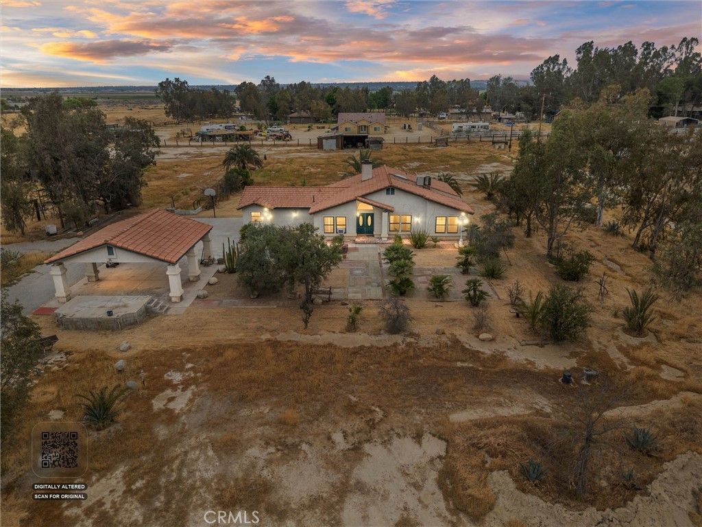 Welcome to this 4B/2B home set on an incredible 5.18-acre RS-zoned lot. With over five acres of land, this property truly stands out presenting a unique chance to own and utilize acreage of this size with endless potential! Step inside to find a double-sided fireplace that creates a natural connection between the dining and living areas, while plantation shutters throughout the main living spaces and kitchen add both style and functionality. Tile flooring enhances durability and ease of maintenance. With 5.18 acres of inviting Hacienda charm, this property presents an exceptional opportunity to develop a premier horse property?complete with space for a barn, riding arena, tack & feed areas, and open turnouts?while also allowing room for a pool! The home also features a covered outdoor structure with electrical, perfect for outdoor entertaining day or night. With space to grow, build, and create your vision, this is the kind of property that turns possibilities into reality!