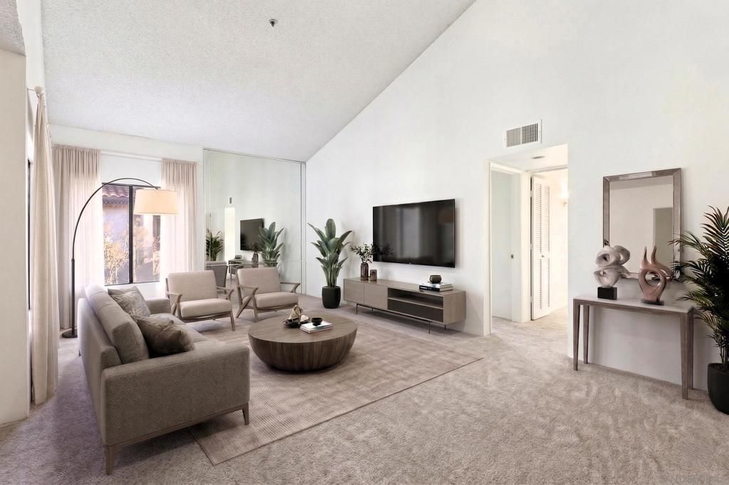 Discover incredible value and endless design potential in this rare top-floor, 3-bedroom, 2-bathroom corner condo located in highly desirable West Mission Valley. Flooded with natural light, the airy and spacious floor plan provides an ideal blank canvas for both investors and owner-occupants ready to customize their dream space. The generous living room features soaring vaulted ceilings, a cozy fireplace, and a wet bar, seamlessly flowing into a dining area that opens to a private balcony. A highly functional kitchen offers abundant cabinetry and counter space to suit your needs. The primary suite serves as a relaxing retreat, boasting its own covered balcony, dual closets, and an ensuite bathroom equipped with a large vanity, dressing area, and a walk-in shower. Two versatile guest bedrooms and a full secondary bath offer excellent flexibility for family, visitors, or a home office. Everyday living is made effortless with convenient in-unit laundry and ample closet storage throughout. Situated within a picturesque, guard-gated community accented by serene water features, residents enjoy resort-style amenities including a swimming pool, spa, and tennis courts. This prime location places you just minutes from Fashion Valley, YMCA, USD, the San Diego River Bikeway, and the exciting new Riverwalk project. With quick freeway access, San Diegos beautiful beaches, vibrant Downtown, and world-class attractions are always just a short drive away.