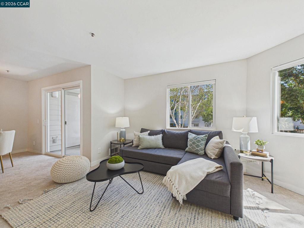 Welcome to your ideal urban retreat in the heart of Emeryville! This beautifully appointed 2 bedroom, 2 bath end-unit condo offers the perfect blend of comfort & convenience. Step inside to a thoughtfully designed layout with natural light pouring in from the newer dual paned windows. The updated kitchen with stainless steel appliances, stone countertop and brass hardware make meal prep enjoyable. Bedrooms are separated on each side of the home, creating privacy while walk-in closets offer great organization. Sip and snack on the private patio that overlooks a well-manicured courtyard that also has a storage closet. Skip visits to the laundromat with in-unit laundry! This home also includes two-car, secured covered garage spaces, an exceptional perk in this area. Beyond your front door, enjoy a plethora of community amenities: A fully equipped fitness center, swimming pool/hot tub, BBQ grassy field, massage/study rooms, clubhouse with billiard & ping pong table, kitchenette for optimal entertaining options. Located near many shopping centers, dining, UCB, movie theatres, BART, Emery Go-Round, I-80 and so much more. This is the perfect pet-friendly place to call home within a vibrant community! 3D Tour here: https://tour.giraffe360.com/6466de7b15524b66b320be5ff5665691