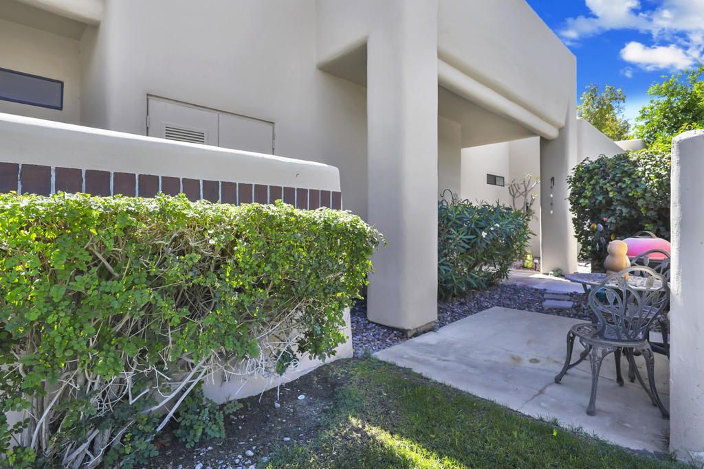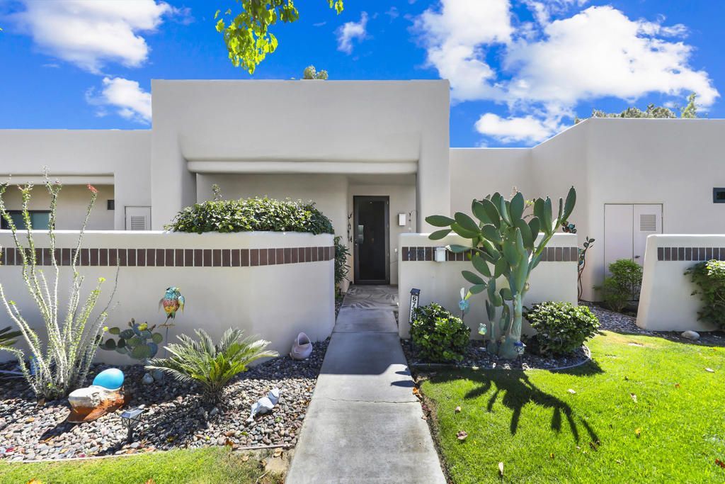 This beautifully updated condo features a clean, contemporary interior with tile flooring throughout and fresh paint for a cohesive look. The kitchen offers an open layout created by removing a dividing column, with updated cabinetry, pull-out storage, upgraded surfaces, and a built-in wine refrigerator, complemented by newer appliances and a modern ceiling fan in the main living area. Enhanced daily living includes a reverse osmosis system, updated primary bath counters, new fixtures, faucets, and toilets throughout, plus a new washer and dryer. The property includes a one-car garage with a retractable door and a soft water connection already in place. Enjoy privacy and quiet from a vantage overlooking Lago 5 greens not along the cart path, in a cul-de-sac setting with nearby access to multiple community pools, including a saltwater option. Monthly HOA dues provide value, covering television and high-speed internet, exterior maintenance to the entry, outdoor pest service upon request, and water service beyond the interior, along with a staffed 24-hour entrance, fitness center, and a range of recreational amenities. Ownership also includes preferred access and discounted rates at a well-regarded 27-hole championship golf course with no initiation fee. Located in a peaceful area and just minutes from Palm Springs, residents enjoy easy access to dining, shopping, entertainment, outdoor activities, cultural attractions and much more.