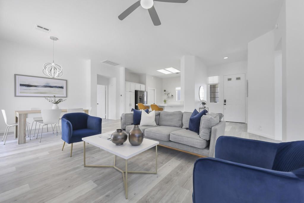 Tucked into the La Pasada neighborhood of Cathedral City, this stylish desert retreat offers the perfect balance of comfort and privacy. Set back from the street, the home sits on an oversized 10,890 square foot lot, featuring 3 bedrooms, 2 bathrooms, separate laundry room, and a light-bright, open-concept layout that maximizes space, and indoor-outdoor flow. At the heart of the home, a renovated kitchen with a breakfast bar, sleek quartz countertops, newer stainless steel appliances, and a seamless connection to the main living and dining areas, all under soaring ceilings that add volume and airiness. The primary suite is a true sanctuary, featuring an updated spa-like bathroom with a soaking tub, walk-in shower, and a generously sized walk-in closet. In addition there are two expansive guest rooms that have high ceilings, fans and large windows. Step into your private south facing backyard paradise, complete with a heated pool, outdoor shower, and stunning mountain views. This home has an impressive 29 solar panel system for energy efficiency installed 5 years ago, buyer to assume lease. Washer, Dryer, kitchen Refrigerator and Rain Soft ECS Water Filtration System included with purchase. Whether you're looking for a full-time residence, seasonal escape, or investment property, this home checks all the boxes with smart upgrades... Close to shopping, dining and I-10 access.
