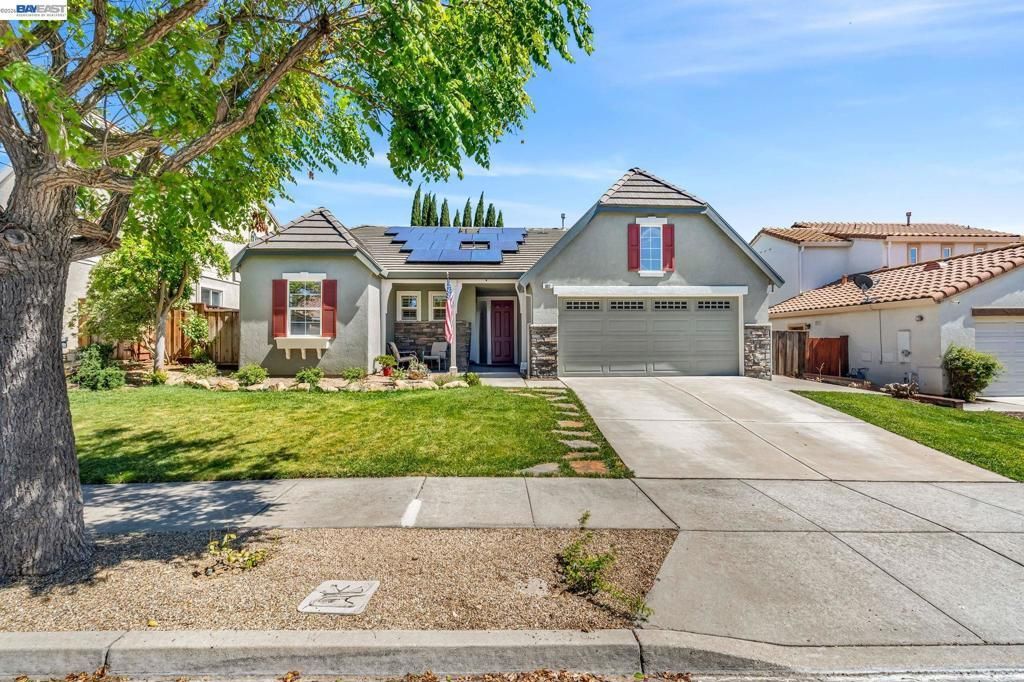 Welcome to this beautifully maintained single-story home tucked away on a quiet court in Shadow Lakes golf course community. Showcasing true pride of ownership, this residence offers a bright and open-concept layout designed for modern living. Step inside to find high ceilings in the spacious family room, creating an airy and inviting atmosphere filled with natural light. The home features durable, stylish flooring throughout?no carpet?providing both elegance and easy maintenance. Situated on a flat lot, the backyard offers ample space and endless potential to create your dream outdoor retreat, whether it's entertaining, gardening, or future enhancements. Enjoy the added value of paid-off solar panels, helping reduce energy costs while promoting sustainable living. Perfectly located within walking distance to a nearby park and just minutes from top-rated middle and high schools, this home combines comfort, convenience, and community. A rare opportunity to own a move-in ready home in a prime location?dont miss it!