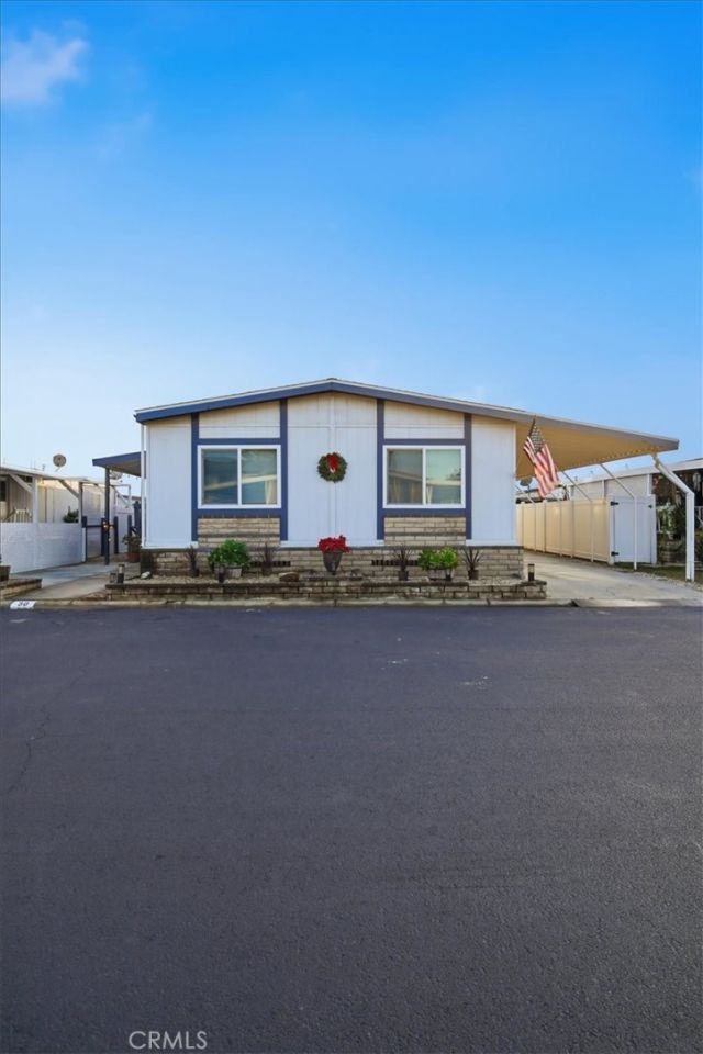 We present to you a peaceful, light-filled retreat in the highly sought-after 55+ Community Santiago Creek Estates. This beautifully designed home offers the perfect balance: spacious enough to live comfortably, yet easy to maintain. Inside, youll find remarkable storage throughout, including dual walk-in closets in the primary suite, an additional oversized walk-in storage room, and a secondary bedroom that lives like a second primary with its own wall of cabinets and shelving. The dining room features a full wall of built-ins, and the separate laundry room provides even more storage to keep life beautifully organized. In addition to the abundant interior storage, the home also includes two exterior storage closets: ideal for seasonal décor, tools, and larger items you dont want inside the home. The living room is anchored by a gorgeous custom fireplace and brightened by skylights and abundant windows. Enjoy the communitys year-round heated pool, friendly neighbors, and the ideal location near the front of the park for convenient guest parking. Newer roof, beautiful natural light, and a welcoming walk-able neighborhood! This is the retreat youve been waiting for!