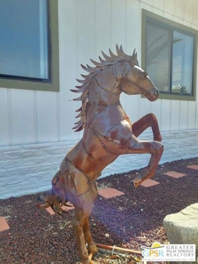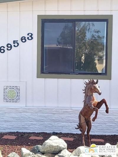 Settled within the very lively golf community of Desert Crest Country Club in a beautiful rural setting, this one of a kind Two Bedroom / Two Bath, COMPLETELY REMODELED manufactured home that was built in 1973 offers a unique blend of comfort and convenience tailored for those seeking an active and vibrant 55+ lifestyle. The rare COVERED RV PARKING especially contributes to your Active style of living! Located in the heart of Desert Crest Country Club yet just around the corner from the huge Clubhouse, mineral spring water pool & spas, and golf facilities that are free to the Owners, this home enjoys the perks of a lively lifestyle, surrounded by the scenic beauty of the desert landscape in the Western Coachella Valley. The Desert Crest Country Club community boasts a 9-hole golf course, inviting residents to enjoy leisurely rounds amid the picturesque setting of pond and mature trees that boast views of Mounts San Jacinto and San Gorgonio and the iconic windmills of the Banning Pass. This oasis extends beyond the golf course, offering a multitude of amenities enhancing your daily life. Residents here enjoy a multi-faceted Clubhouse featuring a healthy mineral water Pool and Spas, providing a serene escape and a hub for plenty of social connections. Indoor Shuffleboard and other activities are a welcome diversion here at the Clubhouse, with many interior facilities to keep you moving. The onsite cafe caters to culinary cravings, the dog groomers attend to furry companions, and the real estate office ensures all needs are met with ease. These conveniences foster not just a residence but a sense of belonging within a home and community bound by shared experiences and vibrant camaraderie. At the center of it all you step inside this well-maintained home, and you'll discover its thoughtfully designed interior that includes new laminate flooring. Two Bedrooms and two full Baths offer both comfort and functionality, catering to the needs of daily living within a spacious interior. The Master Bedroom stands as a serene haven, complete with a light and bright walk-in Closet. The interior is a haven of natural light, thanks to strategically placed large double pane windows, creating a welcoming and airy atmosphere. Of special note are the NEW appliances, NEW plumbing and electrical, and the addition of drywall walls. You even have a large Shed tucked away to the rear of the property and ample parking on one side with covered RV PARKING on the other side. The covered patio makes an inviting space designed for relaxation and entertainment. The newly poured rear concrete patio is a great place to enjoy the sun all day too. It's the ideal spot to revel in the beauty of the desert evenings, fostering moments of tranquility and social gatherings. The low-maintenance landscaping, fenced for privacy, ensures that upkeep remains effortless, allowing residents to focus on the joys of community living. This home represents a harmonious blend of comfort, style, and f