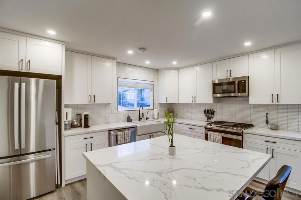 A beautiful gem of a home tucked away in the heart of Lemon Grove. The home was remodeled just 2 years ago and is move in ready. The luxury kitchen is an entertainers delight with island seating and also overlooking the dining area. Step out of the large living room to your private, covered patio. Primary bedroom boasts an ensuite bathroom with duel sinks and walk in shower. Hidden at the back of the home is an extensive patio area currently being used for basketball. There is development opportunity to add a 1100sqft ADU. Plenty of parking for either an RV or or a boat