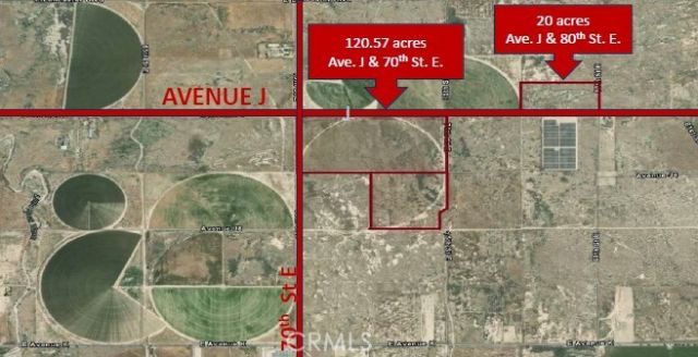 This rare 120.57± acre opportunity offers unmatched development potential along Avenue J, one of Lancasters busiest and most visible corridors. Includes two parcels - APN 3384-009-001: 80.15± acres and APN 3384-009-006: 40.42± acres. Located at the southeast corner of Avenue J & 70th?75th Street East, the property sits adjacent to the Lancaster Clean Energy Center and within reach of key commercial, industrial, and residential growth zones. Flexible zoning: Currently, zoned for Research and Development, Rural Residential, and Contractor Storage Yards, with the following permitted with a CUP: Alternative Energy, Building and Related Trades, Distribution, Light Manufacturing, Vehicle and Equipment Repairs, Food Manufacturing, Processing, Wholesale Sales and Storage, and Warehousing. A rare equity by-back opportunity is also available. With secure water rights, dedicated power infrastructure, and an exceptional location, these parcels represent one of Lancasters premier large-scale development opportunities. Whether for energy, industry, healthcare, or community services, this site is well-positioned to support transformative projects that meet both local and statewide demand. Includes a turnkey water system with a newly drilled 580 well, 150 hp Flowise Pump & Emerson Motor, exclusive power supply via five SCE utility poles dedicated to the parcels, and negotiable water rights in perpetuity: 50 acre-feet/year (with an additional 500 acre-feet of carryover production available).