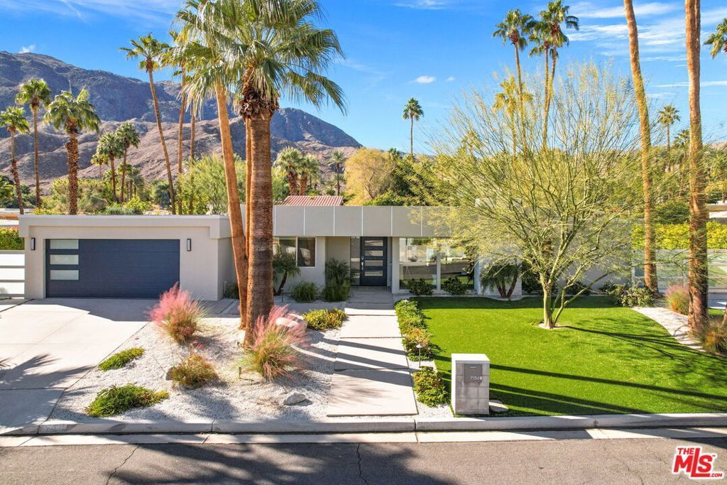 FURNISHED RENTAL | MINIMUM 2 MONTHS | AVAILABLE FOR APRIL & FESTIVAL SEASON. Fully furnished Mid-Century Modern retreat in Magnesia Falls Cove, perfect for a seasonal stay during Coachella. This 3-bedroom, 2-bath home features an open living space with porcelain tile floors, a statement fireplace, and walls of glass with electronic shades. The chef's kitchen offers custom cabinetry, Dekton countertops, premium appliances, and a large island that opens to seamless indoor-outdoor entertaining with a patio bar and fire pit. The primary suite opens to a private resort-style backyard with pool, spa, and mountain views. Two spacious guest rooms share a modern bath with skylight and designer tile. Additional features include citrus trees, shaded lounge areas, an air-conditioned two-car garage, and smart home controls. A stylish desert escape for Palm Springs' most vibrant season.