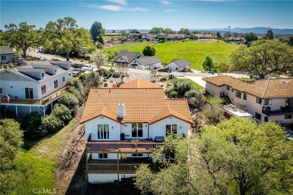 Rare opportunity to own a 1-acre estate within Paso Robles city limits, offering space, privacy, and expansive views in the heart of wine country. Built in 2007, this thoughtfully designed 5 bedroom, 5 bathroom residence with approximately 2,788± sq ft provides a unique and highly desirable layout ideal for both comfortable living and flexible multi-generational use. The main level features two private primary suites, each with two closets and en-suite bathrooms with dual sinks, along with sliding glass doors that open directly to the upper deck. Large windows throughout the home capture beautiful natural light and frame scenic views to the north, east, and west, overlooking the surrounding hills and the back portion of the property. The living room and dining area connect seamlessly to two separate decks on the main level, creating multiple outdoor living spaces that invite indoor-outdoor entertaining while enjoying the surrounding landscape and views. The lower level offers exceptional versatility with two additional bedrooms connected by a full bathroom with dual sinks, a spacious family room, and ample storage including a dedicated storage room and additional space beneath the stairs. A standout feature of the home is the private guest suite, complete with its own exterior entrance, private balcony, kitchenette, living area, and 3/4 bathroom. With a lockable interior door, separate thermostat, and its own tankless hot water heater, the suite offers excellent flexibility for extended family, guests, or potential rental income. It has previously been rented for approximately $1,200 per month including utilities. Outdoor living is a defining element of the property. Multiple decks extend the living space outdoors, and four of the five bedrooms offer direct access to deck areas, allowing residents to fully enjoy the surrounding views and peaceful setting. The 1-acre lot provides a rare combination of privacy and space while still being located within the city. The grounds feature low-maintenance landscaping with fig and apricot trees, along with mature oak trees that have recently been trimmed, adding character and natural beauty to the property. Paso Robles offers a vibrant lifestyle, renowned wineries, dining, and outdoor recreation, and this home is ideally located just 30± minutes from the coast, making weekend escapes to the beach effortless. A rare combination of acreage, flexible living spaces, and beautiful view decks within city limits.