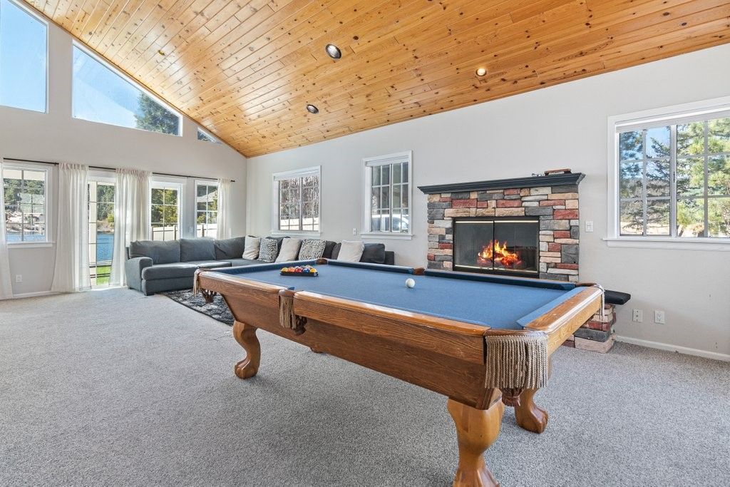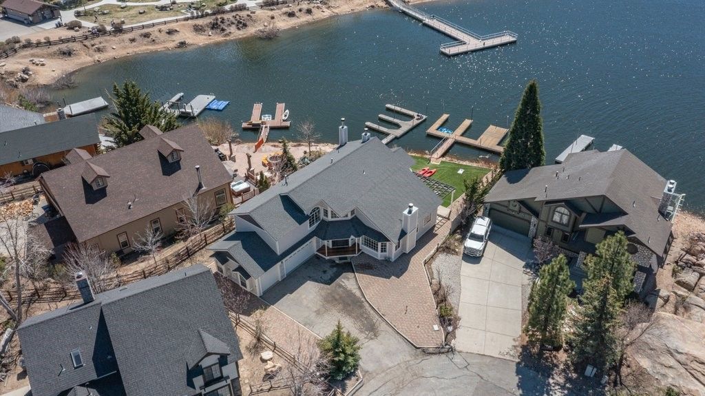Experience elevated lakefront living at its finest at 735 Tayles Point Road, ideally situated in the highly sought-after Boulder Bay neighborhood of Big Bear Lake. Tucked away at the end of a quiet cul-de-sac, this custom lakefront home offers 2,863 square feet of thoughtfully designed living space, featuring 4 bedrooms and 3 bathrooms. The home opens to light-filled living spaces framed by expansive windows that draw the lake in at every angle. Mornings begin with still water and mountain air; evenings settle into golden reflections across the bay. The layout is both relaxed and refined, with generous gathering areas and a dedicated game space anchored by a pool table?perfect for hosting without ever feeling crowded. Outdoors, a private jacuzzi sits quietly positioned to take in the scenery, offering a front-row seat to Big Bears changing seasons. Just beyond, the propertys private 3-slip dock is a standout feature?ideal for multiple watercraft and effortless days spent on the lake. Practicality meets luxury with a spacious 3-car garage and an EV charger already in place, making year-round living as seamless as it is indulgent. Whether envisioned as a legacy retreat or a polished lakefront investment, 735 Tayles Point Road captures the essence of Big Bear at its most elevated?uncompromised views, direct water access, and a setting thats simply hard to replicate.