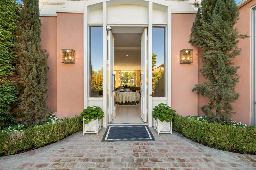 Enviably positioned within prestigious Marrakesh Country Club, this John Elgin Woolf-designed villa is a timeless statement of Hollywood Regency design. Iron gates open to a landscaped brick-pavered courtyard that evokes old-world refinement, creating an ideal stage for al fresco entertaining amidst towering cypress trees and lush verdant walls. A dramatic, set-like entrance unfolds through the iconic Pullman double doors--hallmarks of Woolf's grand theatrical style--revealing the classic three-bedroom, three-bath Plan D, the largest of the original layouts, at 2,427 sq. ft.Enter through the foyer to the great room, where clean modern lines meet floor-to-ceiling windows framing south-facing views. A sleek fireplace anchors the space, accompanied by custom-lit niches designed for objets d'art. The kitchen features custom cabinetry, a fully paneled integrated refrigerator, granite countertops, and a center island with seating. The expanded patio, lined with sculptural hedges, offers enviable views across the fourth hole of the course to the majestic Santa Rosa Mountains beyond.Two spacious bedrooms each enjoy private en-suite baths, with the primary well-appointed and finished in marble, and opening to atrium views. The guest suite includes a sitting room with views of both the courtyard and atrium. The third bedroom, which also serves beautifully as an office, offers built-in cabinetry with dual desks and direct access to the inviting courtyard.Marrakesh is a boutique country club ideally located in the central valley among the desert's finest private clubs. Amenities include an 18-hole executive golf course designed by Ted Robinson, tennis and pickleball courts, 14 pools and spas, a fitness center, and an active, newly remodeled clubhouse with fine dining. Just minutes away lies renowned El Paseo, lined with elegant boutiques, restaurants, art galleries, and coffee shops. Experience Marrakesh--schedule your private tour today.
