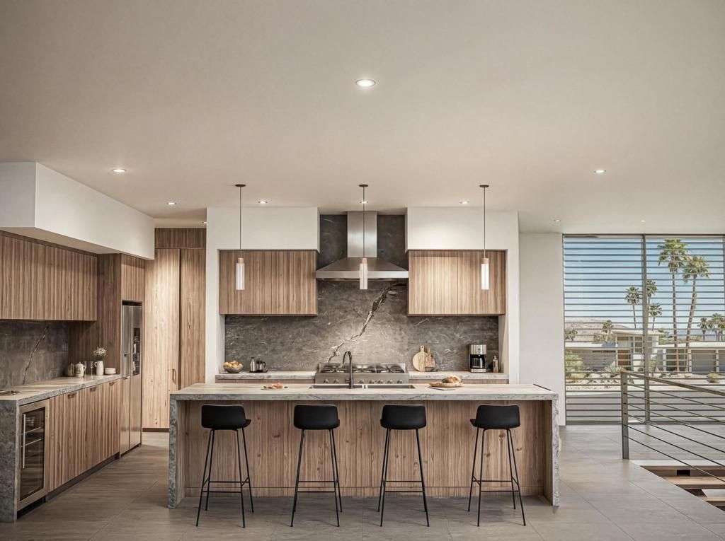 Experience the pinnacle of modern desert living, a sleek, contemporary residence currently under construction in the heart of Palm Springs, with anticipated move-in readiness in March 2026. Thoughtfully designed to blend bold architecture with refined comfort, this brand-new home offers a striking presence and effortless indoor-outdoor flow. At the center of the home is a show-stopping architectural staircase, where natural wood treads dramatically contrast against black metal framing and cable railings, creating a sculptural focal point that sets the tone for the entire residence. Clean lines, open volumes, and expansive glazing define the interiors, maximizing natural light and framing stunning mountain views throughout. The home features 3 spacious bedroom suites, each designed as a private retreat with well-appointed bathrooms, plus a stylish powder room ideal for guests. The open-concept living spaces are designed for both everyday living and entertaining, seamlessly connecting to the outdoors. Outside, a resort-style pool and spa anchor the private yard, surrounded by a natural desert landscape that enhances privacy while celebrating the beauty of the Palm Springs environment. The outdoor areas are perfectly positioned to capture panoramic mountain vistas and dramatic sunsets, creating an ideal setting for relaxation or entertaining under the desert sky. With contemporary finishes, modern systems, and brand-new construction, this home offers the rare opportunity to own a never-lived-in residence in one of Palm Springs' most desirable settings. Designed for those who appreciate modern architecture, thoughtful details, and effortless luxury, 775 Cabrillo is poised to be an exceptional desert retreat coveted by all.