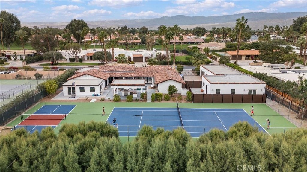 30 day rental minimum. Located inside the prestigious, guard-gated Bermuda Dunes Country Club, featuring 24/7 security and an exclusive championship golf club within the community. Situated on just over half an acre, this resort-style property offers exceptional privacy, with neighboring homes also featuring tennis courts that create natural buffers?making the backyard completely secluded and shielded from view. The main residence offers 3 bedrooms and 2.5 bathrooms, designed for both luxury living and entertaining. The home is filled with natural light, featuring windows galore with sweeping views of the private tennis court and resort-style backyard. The newly remodeled chefs kitchen is equipped with high-end luxury appliances and opens to multiple sitting and entertaining areas throughout the home. With a total of 10 TVs, this property is perfect for hosting, relaxing, and enjoying every space to the fullest. The expansive primary suite is a true retreat, featuring a massive walk-in closet and a newly remodeled spa-like bathroom with a sit-on-top soaking tub and elegant new finishes. Two guest bedrooms are configured in a Jack-and-Jill layout with a shared bathroom, and each guest room enjoys its own private patio space. Additional amenities include a dedicated billiards room with a brand-new pool table and a versatile hobby room currently set up as a game room and workout space. The home features new flooring throughout, fresh interior paint, and numerous recent upgrades. The detached guest casita offers approximately 1,100 square feet of additional living space with 1 bedroom and 1.5 bathrooms. Designed with privacy in mind, it is separately fenced from the main residence and includes its own laundry room, oversized walk-in closet, and a flexible nook with space for a potential second sleeping area or office. This estate is built for security and convenience, featuring a four-car garage plus an additional garage for a golf cart or small vehicle, along with a gated driveway. The outdoor living experience is unmatched, with an Olympic-size tennis court, a professional-grade pickleball court, a resort-style swimming pool (3 to 6 feet deep), built-in jacuzzi, and a covered patio with outdoor BBQ?perfect for entertaining year-round. Combining luxury, privacy, security, and resort-style amenities, this one-of-a-kind Bermuda Dunes estate offers an unparalleled lifestyle within one of the deserts most sought-after gated communities.