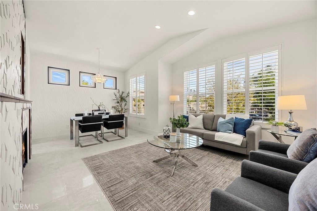 Welcome to a true designers showcase in the highly sought-after Monaco community of Anaheim Hills. This exceptional residence has been thoughtfully upgraded with a level of detail and sophistication rarely found in homes of this caliber. From the moment you step inside, youre greeted by stunning porcelain tile accent walls and a striking fireplace surround that serves as a centerpiece of the living space. Every element has been curated to create a modern yet inviting atmosphere. The gourmet kitchen is a standout, featuring premium Viking appliances?including a 5-burner range, microwave, and dishwasher?paired with a Sub-Zero refrigerator. Quartz countertops, a convenient breakfast bar, and an adjacent dining nook make this space perfect for both everyday living and entertaining. Step outside to the private patio to enjoy tranquil views of trees and open sky?an ideal setting for morning coffee or evening relaxation. The main level offers two bedrooms, including a luxurious primary suite designed with comfort and style in mind. The spa-inspired primary bath features a spacious walk-in shower, dual sinks set in elegant stone countertops, a private water closet, and a generous walk-in closet. A beautifully updated hall bath continues the homes cohesive design with high-end finishes and a custom walk-in shower. Upstairs, a versatile loft functions as a third bedroom or private retreat, complete with its own well-appointed bathroom and ample closet space. Bamboo flooring extends throughout both levels, complementing the homes upscale aesthetic. As an end unit, the home is filled with natural light, enhancing its open and airy feel. Additional highlights include a two-car attached garage, a full driveway for extra parking, and close proximity to the community pool?perfect for enjoying warm Southern California days. This is a rare opportunity to own a truly turn-key, designer-upgraded home in a prime location. Dont miss your chance to experience it for yourself.
