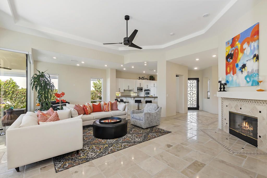 WOW...Mesmerizing Santa Rosa Mountain views from Furnished/Turnkey, 3 Bedroom/4 Bath w/Detached Casita home's private pool/spa overlooking the eighth fairway of the members only Pete Dye designed golf course in La Quinta. First time seasonally offered for lease in the prestigious Citrus Country Club. Enter imposing ornate metal door into this Valencia open floor plan featuring random ceramic tile flooring throughout w/ mosaic accented inlaid black marble squares, cozy fireplaces, step-down wet bar, two master suites main house another master suite in detached casita all featuring ensuite baths and California king beds. Twelve-foot height windows/sliders & French doors offer abundant lighting. Gourmet kitchen features island, breakfast bar, stainless appliances, farmer's sink and granite countertops. Gated, tranquil courtyard entry w/fireplace and cantina lighting for evening relaxation and entertainment. Enjoy the breathtaking south mountain views from the custom pebbletech, saline pool/spa w/cascading slate waterfall. Meticulously maintained and ready to enjoy. Seasonal Lease only. Amenities include monthly maid service & HOA fees plus pool/gardener service, water, trash, cable TV, four TV's w/remotes and Wi-Fi. Tenant pays gas/electric utilities. Leased Jan-March 2027