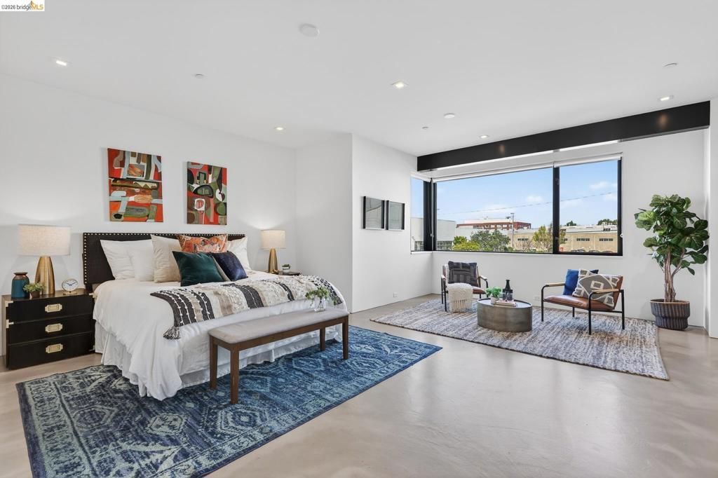 811 Folger Avenue, completed in 2020, offers an elegant interpretation of a hybrid Live-Work design by architect David Stark Wilson. This is an all-electric property, BESO exempt! The property has two residential floors and one office/workspace floor. Both the residential and workspace/office floors have independent heating and AC systems, all powered by a rooftop solar array. The residential floors feature 3 bedrooms and 2 bathrooms, a private front deck, and an open-plan study. The top floor has a spectacular great room, a dynamic kitchen/dining area/living room combination featuring a huge island, a suite of SS energy-efficient appliances, and beautiful custom windows with urban views. The office/workspace floor has a level-in independent entry, an ADA bathroom, and the counter space is plumbed for a microwave and refrigerator. The tall French doors capture the southern light, illuminating this space with bright natural light. This office space may be rented separately. The heart of the property is an unexpected stainless-steel staircase, an unexpected companion to the polished concrete floors and board-formed concrete walls. The property has two designated parking spaces (one space has an electric car charger) and is near Berkeley Bowl, shops, cafes, and mass transit.