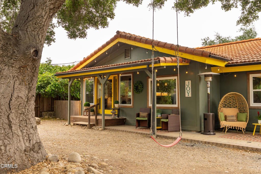 Discover your own private retreat, tucked behind a gated entrance on nearly an acre. Where rustic charm meets modern comfort with sweeping vineyard and hillside views. This thoughtfully renovated home features a warm open-concept layout, anchored by a spacious kitchen with large gathering island, and a premium Wolf range. Luxury vinyl plank flooring, dual-paned windows throughout, bonus family room with french doors. The primary suite boasts a relaxation space / closet. with a soaking tub, vanity area, built-in fan/bluetooth speaker creating a meditative environment that continues outside to the adjacent koi pond.Step outside into a serene and inspiring oasis - the grounds are designed for enjoyment and have endless possibilities. Winding decomposed granite pathways lead you past many gathering spaces, mature oak trees, large chicken coop, corral for livestock, and a greenhouse surrounded by raised beds - with an off-grid vibe, it's perfect for the hobby farmer. Spend sunny afternoons in the above-ground pool, or relax and star gaze from the bubbling spa. Versatile bonus spaces include a fully outfitted yurt, and four finished Tuff sheds. Perfect for guest overflow, creative studios, or work-from-home set ups. Located just minutes from Lake Casitas, local dining, and easy commuter routes, this property combines the quiet serenity of country living with accessibility--perfect for those seeking a warm, inviting, and truly unique ranch lifestyle.