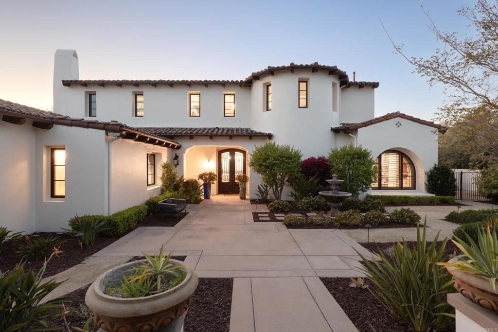 Set behind the gates of Santaluz?one of San Diegos most sought-after and increasingly coveted communities?this custom Santa Barbara estate captures what buyers are searching for but rarely find: expansive panoramic views, privacy, and a true sense of arrival. Positioned near the highest point in the neighborhood on a quiet cul-de-sac, the home offers sweeping sit-down views that stretch from the rolling hills to the distant Pacific, with protected open space creating a natural buffer of privacy. Its the kind of setting that evolves throughout the day?sunsets, ocean air, and evening lights becoming part of the experience. Designed to live primarily as a single level, the main floor includes a serene primary suite, executive office with private courtyard, and multiple en-suite bedrooms?offering both comfort and flexibility for everyday living. Upstairs, a private guest retreat, bonus/media space, and sky lounge open to some of the most captivating views in all of Santaluz. At the center of the home, expansive living areas connect seamlessly to covered loggias through vanishing doors of glass?creating effortless indoor-outdoor living. Whether hosting or unwinding, the setting feels both open and intimate, anchored by panoramic vistas in every direction. The grounds offer a generous, usable yard with space to create a custom resort-style outdoor setting, all while enjoying the peace and privacy of this elevated homesite. Built with intention and detailed with custom finishes, wood beam ceilings, stone elements, and handcrafted touches throughout, this is a residence that balances warmth with refinement. More than just a beautiful home, this is a rare opportunity to own a custom estate with panoramic views in Santaluz?at a price point that is becoming increasingly difficult to find.