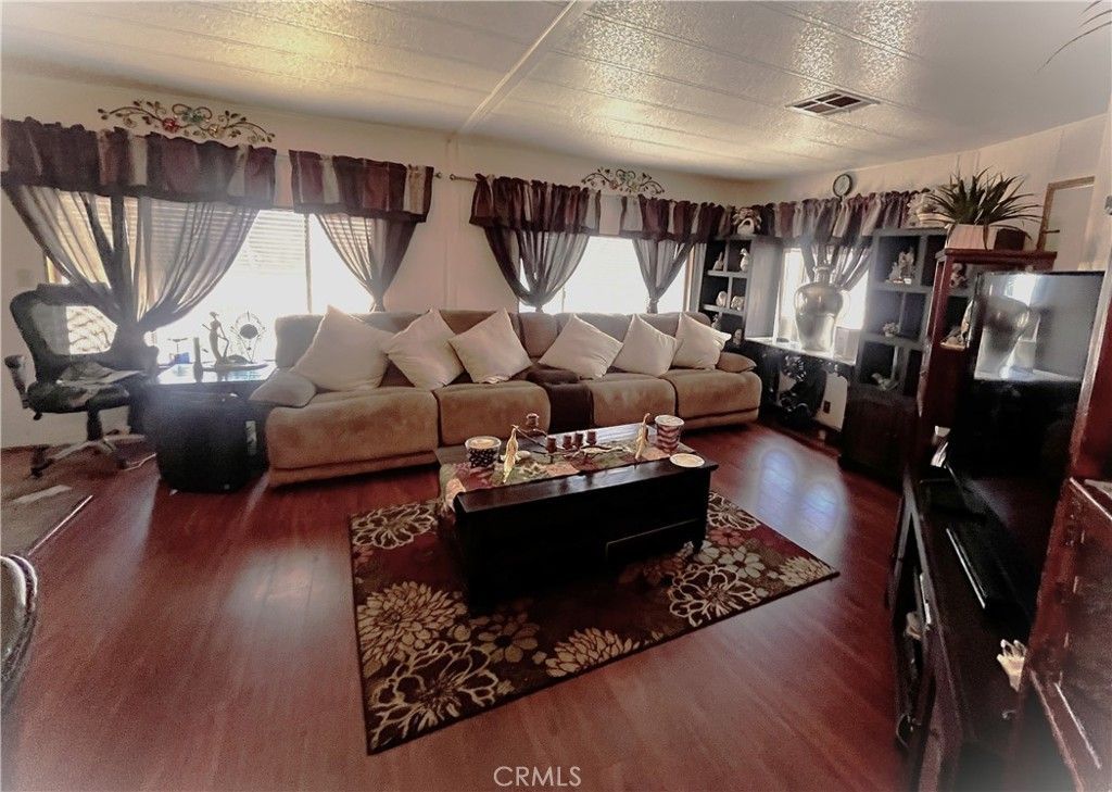 Located in South Lake up the Hill on Goat Ranch Rd minutes from the Lake and Town conveniences....Large-corner lot fenced with gated access on Dawn Pl. with a covered carport and access on Star Bright Dr. gated for boat, RV and all the toys. A (2) bedroom open floorplan with formal dining area and large living room with wood-burning Franklin-like stove....warm rich-colored vinyl flooring T/O....custom window treatment and blinds on windows....Open floorplan....Kitchen in the round with table top for (2) open to family room area....Large master bedroom with mirrored closet door....2nd bedroom with access to bathroom....indoor laundry area....a wonderful deck-covered with view of valley and mountain vistas, sunrises in the am....Seller states furniture pieces can be included on sale....