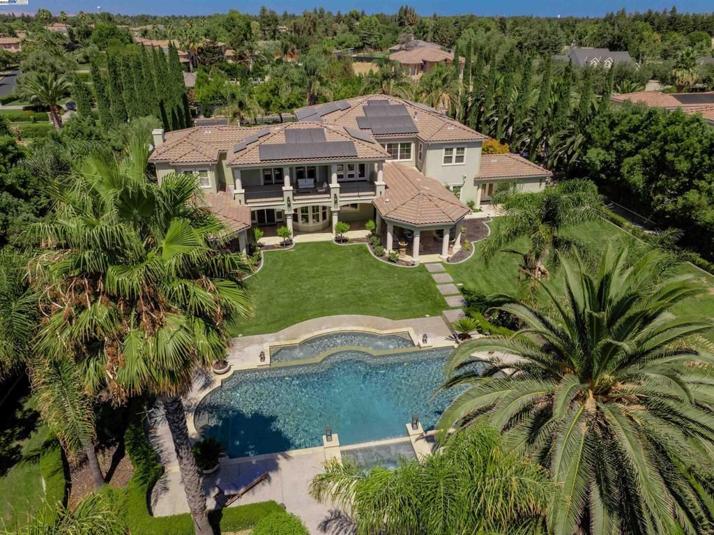 Welcome to Fair Oaks Estates where elegance, comfort, and luxury meet. This custom-built home is nothing short of breathtaking. From the grand entryway with dual staircases to the convenience of a private elevator, every detail has been designed to impress. Enjoy panoramic views of the backyard oasis from the open-concept kitchen, family room, main suite, and the suites private balcony, creating a true sense of paradise right at home. With 6 spacious bedrooms (plus the option for a 7th), this residence offers incredible flexibility. Many bedrooms feature en-suite baths and walk-in closets, while upstairs guest suites boast private balconies. Additional features include a custom audio system and advanced home monitoring for peace of mind. Step outside and experience resort-style living in your professionally landscaped yard. Entertain with ease at the covered outdoor kitchen?complete with BBQ, ice maker, fridge, and sink or unwind in the covered lounge area with an outdoor fireplace. The sparkling pool and spa complete this incredible backyard retreat. For car enthusiasts or families with multiple vehicles, the property also offers two separate 3-car garages. This home truly embodies luxury living in Tracy. Dont miss your chance to own a residence that feels like paradise.