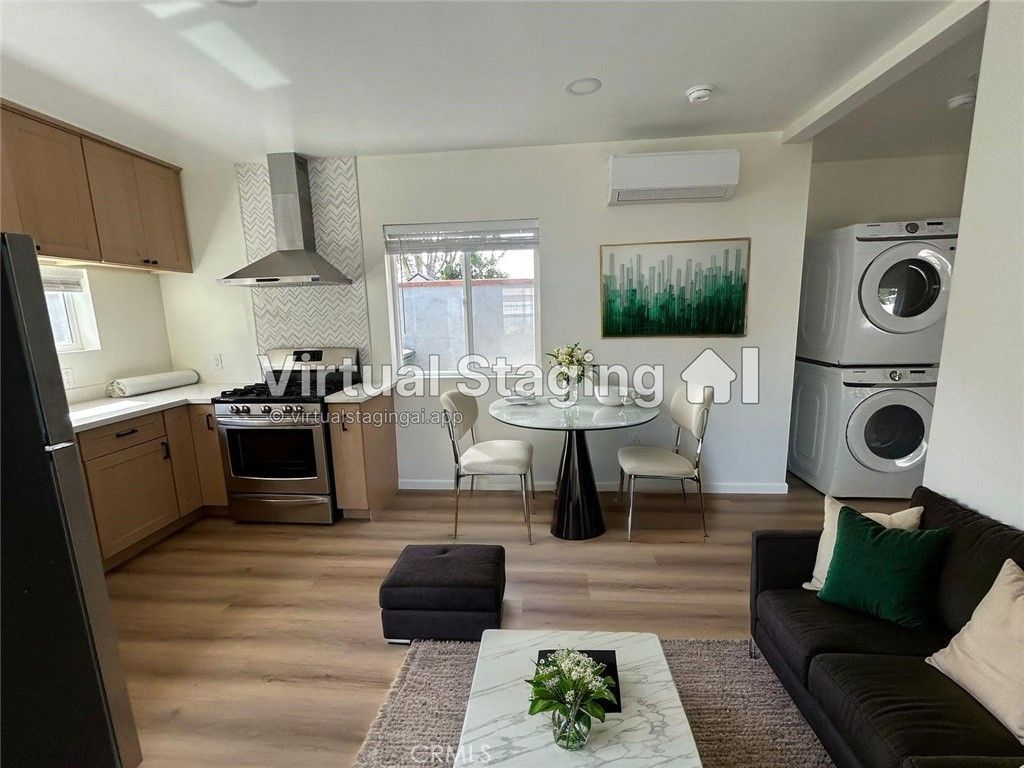Excellent Opportunity! Brand-new ADU located in the highly desirable city of Downey?perfect for a couple or a starting family. This beautiful unit sits next to a sparkling pool, ready to enjoy this summer. The home features recessed lighting, elegant walnut cabinets, and sleek quartz countertops, along with a brand-new refrigerator. It also includes a brand-new washer and dryer, dual-pane windows, a sliding glass door, new faux blinds, and its own A/C and heating wall units for year-round comfort. Ideally located in a prime area close to restaurants, markets, home improvement stores, hospitals, and major freeways. Walking distance to the Promenade Shopping Center?imagine enjoying dining just steps away at popular spots like Gaucho Grill, Lazy Dog, and Benihana. Conveniently located near Kaiser Permanente and PIH Health Downey Hospital, with easy access (less than 10 minutes) to the 105, 605, 5, and 710 freeways. Water and gas are included?paid by the homeowner.