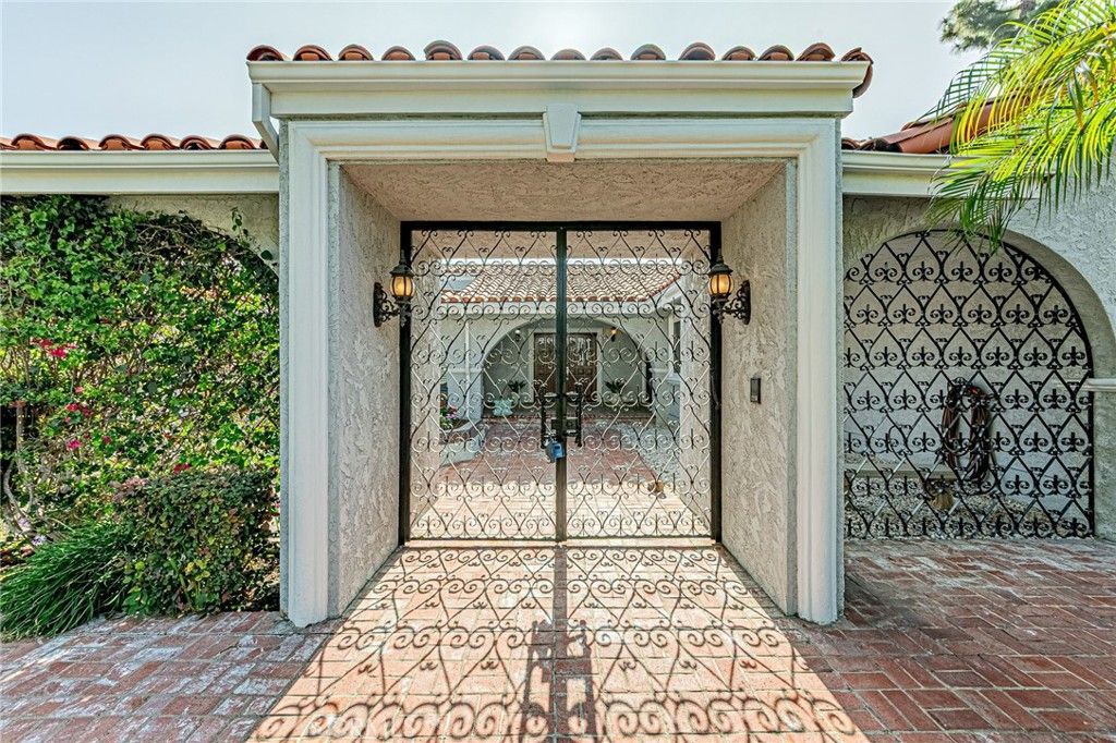 Rare opportunity to own a true single-story Spanish-style home in the prestigious North Friendly Hills community overlooking the Friendly Hills Golf Course (4th hole). Featuring 4 bedrooms, 4 bathrooms, and approximately 3,808 sq ft, this home offers a spacious and functional layout ideal for everyday living and entertaining. Privately gated, the home welcomes you into a charming courtyard with a custom planter centerpiece. Inside, the layout is enhanced by arched architectural details and travertine and wood flooring throughout. The floor plan includes a formal living room and family room with fireplaces, while the formal dining room is currently used as an office. The upgraded kitchen features an oversized island with granite countertops, designer drop lighting, and seating, along with dual sinks including a farmhouse-style sink, gas cooktop, stainless steel appliances, built-in desk, garden window, and an adjoining eating area. The kitchen opens to the living areas, and the family room features wood-beamed ceilings, a fireplace, and French doors leading to the outdoor spaces. A standout feature is the light-filled enclosed sunroom-style bonus space, ideal for a gym, game room, or additional living area. Situated on a 16,711 sq ft lot, the backyard features a built-in BBQ, spacious patio areas, grassy area, and a wood deck with golf course views. The primary suite offers a walk-in closet, a bathroom with separate shower and tub, and direct backyard access. Additional features include a three-car garage with epoxy-coated flooring and a separate storage room, crown molding, plantation shutters, central vacuum, ceiling fans, and Dual air conditioning and wall unit A/C for enclosed patio.