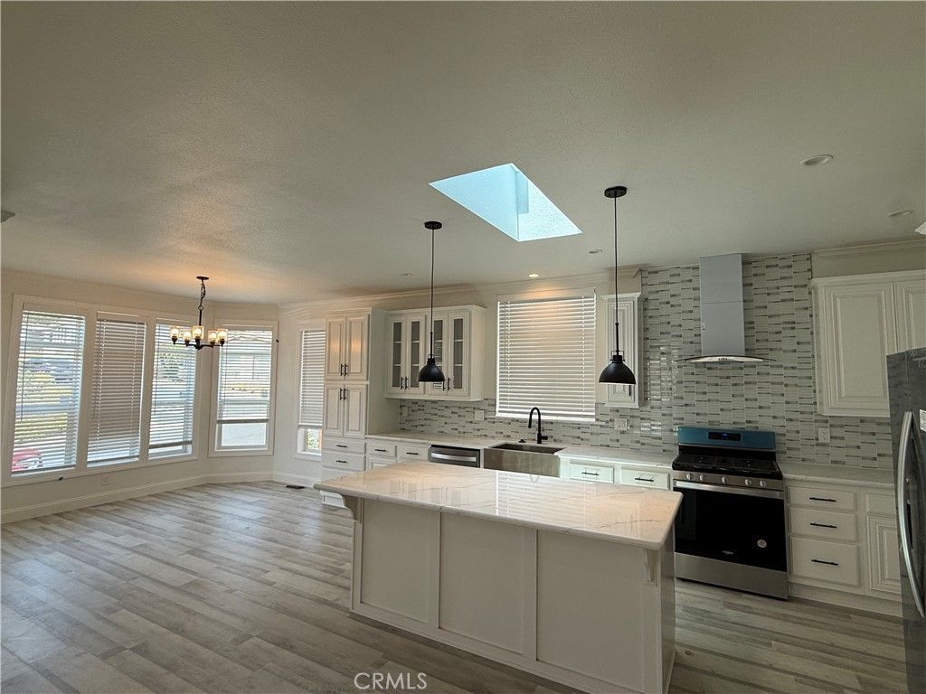 Discover this brand new 2025 home. 3 bedrooms 2 bathroom, approximately 1,500 sq/ft. This beautiful home offers a spacious open concept living area big windows to welcome in tons of natural lights. The kitchen features custom white cabinets, a center island with an eating bar, stainless appliances: double door refrigerator, stove, dishwasher, chef hood and farmhouse undermount sink with goose net faucet. Kitchen also features full heights mosaic backsplash, custom white cabinets and 24 x 48 skylight. Kitchen island opens to a spacious dinning room with bay windows and living room with coffer ceiling. Quarts countertops and ceiling fans throughout home. Master bathroom displays double sinks and framed mirror with separated toilet. 100% water proof vinyl plank throughout home. 9 feet ceiling. 7 years warranty. Low monthly space rent of $1,525/month.