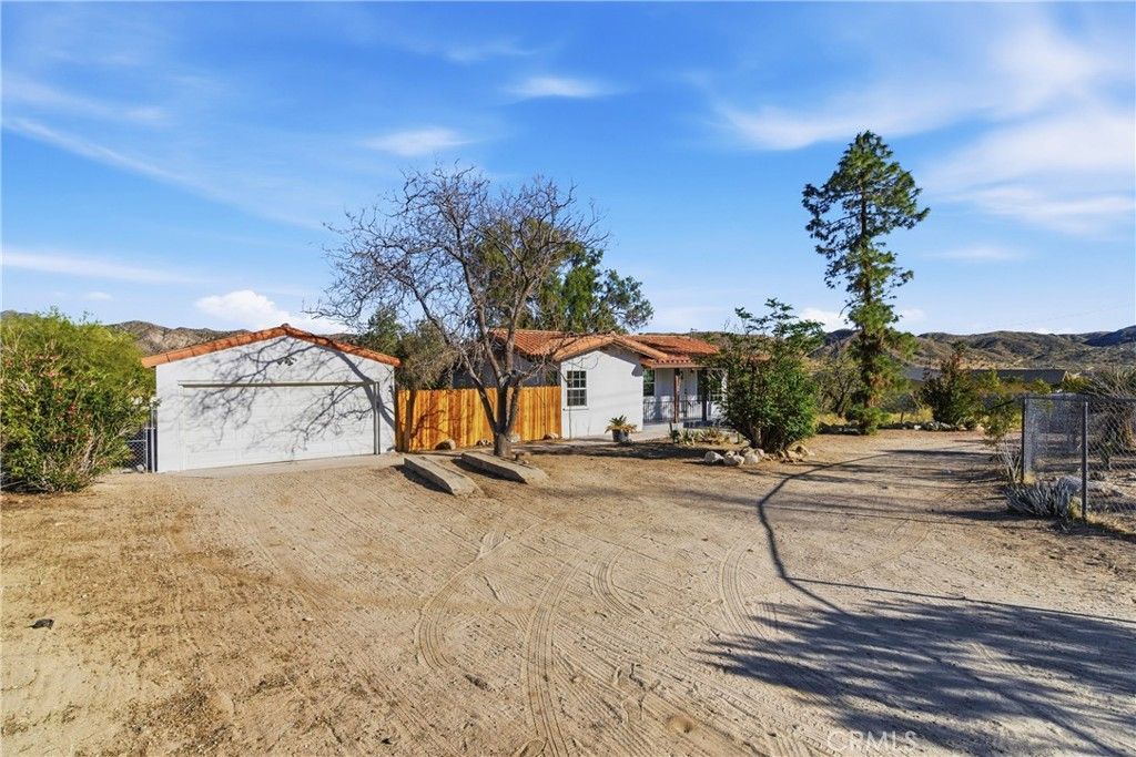 Charming Remodeled 2 bedroom, 1 bathroom home with den located in the peaceful area of Morongo Valley Property features indoor laundry, functional floor plan, and Spanish tile roof. Situated on an approximately 1.3-acre lot, offering ample space for outdoor use, storage with detached 2 car garage, or future possibilities. tiled bathroom and indoor laundry. Enjoy desert views and a quiet setting while still conveniently located near Yucca Valley, Joshua Tree, and Palm Springs.