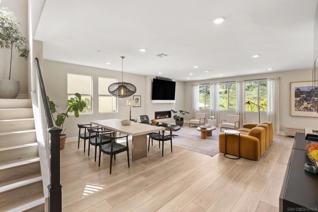 Located in the sought-after Skylark community of San Marcos, this beautifully upgraded newer home offers privacy, hillside views, and access to nearby trails with no direct neighbor behind. Built in 2023, the home features a flexible five-bedroom layout including a desirable downstairs ensuite bedroom, ideal for guests, multigenerational living, or a private home office. Inside, the open floorplan is designed for modern living with abundant natural light, luxury vinylwide-plank flooring, recessed lighting, and seamless indoor-outdoor flow. The chefs kitchen features a large center island, quartz countertops, induction cooktop, stainless steel appliances, walk-in pantry, and extensive cabinetry, all opening to the main living space and covered outdoor patio through oversized sliding doors. The spacious primary suite offers peaceful hillside views and a luxurious bath with dual vanities, soaking tub, separate shower, and a custom California Closet walk-in wardrobe. Upstairs also includes a versatile loft ideal for a media room, office, or play space. One of the homes standout features is the backyard retreat?complete with a covered patio, sparkling pool and spa, and scenic hillside backdrop that creates a private setting for entertaining or relaxing. Additional highlights include a three-car garage, large laundry room with sink and cabinetry, generous under-stair storage, water softener, water filtration systems, custom closet systems, and landscape lighting. Residents of the Skylark community enjoy neighborhood parks, playgrounds, trails, and recreational spaces including bocce courts, with additional planned community amenities. The location offers convenient access to shopping, dining, Palomar College, Cal State San Marcos, golf courses, and nearby Highway 78 for commuting throughout North County. A rare opportunity to own a newer home with a pool, views, and open-space privacy in one of San Marcos most desirable communities.