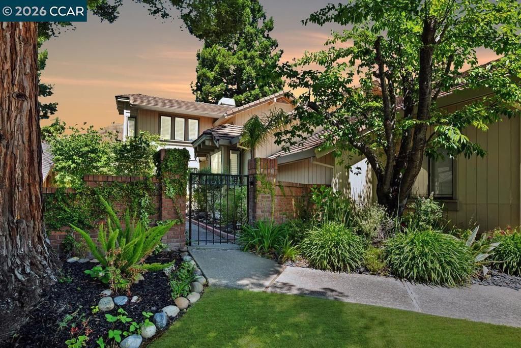 Updated Blackhawk Country Club home. 18th tee/hillside views. Prestigious cul-de-sac steps from Lakeside Golf Course & clubhouse. Gated ctyd garden entry. 2811+/-light-filled SF. Open design. 3 bds, 3 updated bths. Spacious loft offers potential for bonus/game rm, home office. New int paint. Soaring vaulted ceilings, plantation shutters, recessed lighting, automated blinds, skylights, multiple sliders to bkyd. Formal living rm w/gas frpl, crown molding. Formal dining area. Fabulous chefs kitchen. Granite counters, bksplsh, island/brkfst bar, custom cabinetry, reed glass upper cabinets. Stainless appls: Wolf range w/dual ovens, six gas burners, griddle, SubZero frig, Bosch dw, microwave. Nearby buffet w/wine frig. Walk-in pantry. Adj family rm w/frp. Casual dining area w/view bay window, bkyd access. Primary suite on upper level. Sitting rm area, slider to Juliet balcony, carpet, walk-in closet rm. En suite w/travertine tile finishes. Dual vanities, large soaking tub, shwr behind sliding glass drs. 2 main-level bdrms inclds 1 w/en suite & slider to pvt atrium. Pvt bkyd. Pool, spa, paver patios, bordering garden bds. 2+ car garage, workbench. Near golf, clubhouses, tennis/pickleball cts, fitness ctr, Sports Complex. Near Blackhawk Plaza, downtown, top-rated SRVUSD schls, freeways.